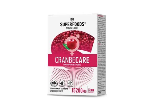 Superfoods CranbeCare Συμπλήρωμα Διατροφής με Κράνμπερι 15200mg για την Καλή Υγεία του Ουροποιητικού Συστήματος 30 Κάψουλες