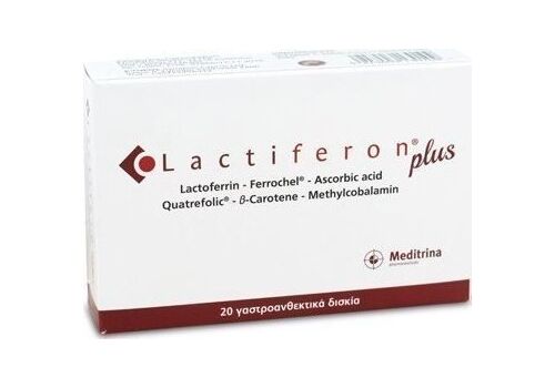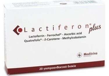Το Lactiferon plus είναι ένα συμπλήρωμα διατροφής που περιέχει λακτοφερρίνη, β- καροτένιο, ασκορβικό οξύ, διγλυκινικό σίδηρο (Ferrochel), L-μεθυλοτετραϋδροφυλλικό οξύ (Quatrefolic) και μεθυλοκοβαλαμίνη.