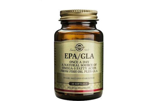 Ειδικότερα, το EPA / GLA παρέχει πολυακόρεστα GLA από λάδι μποράγκου, πολυακόρεστα ωμέγα-3 (EPA και DHA) από ιχθυέλαια καθώς και Βιταμίνη Ε χωρίς σόγια ενώ είναι παρασκευασμένο χωρίς πρόσθετα σε ψυχρή πίεση. Eπιπλέον, βοηθά στη διατήρηση και ενίσχυση της καρδιαγγειακής υγείας, συμβάλλει στην τόνωση της καλής υγείας του δέρματος ενώ παράλληλα μπορεί να βοηθήσει σε περιπτώσεις φλεγμονοδών καταστάσεων.