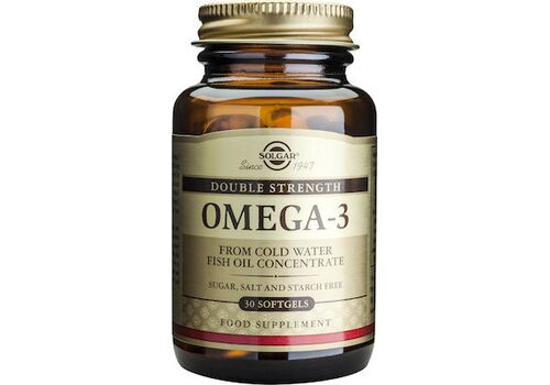 Το Omega-3 double strength της SOLGAR® παρέχει υψηλής ισχύος λιπαρά οξέα Ωμέγα-3 ψυχρής έκθλιψης και χωρίς πρόσθετα και είναι ιδιαίτερα χρήσιμο στην καλή υγεία του καρδιαγγειακού συστήματος, σε περιπτώσεις ημικρανιών και ρευματοειδούς αρθρίτιδας.