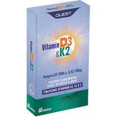 Quest D3 2500iu & K2 100mg 60 Capsules - Nutritional Supplement For Immune, Bones, Musc...