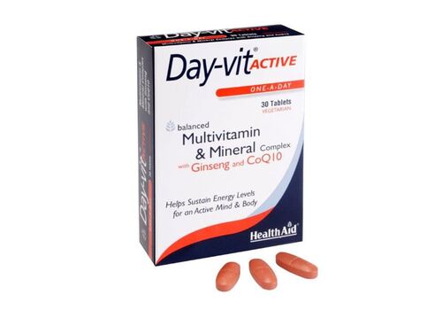 Health Aid Day-vit Active, Multivitamin & Mineral & Co Q10-Ginseng, Πολυβιταμίνες, Σωματική & Πνευματική Τόνωση 30tabs