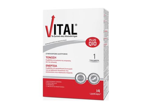 Tο συμπλήρωμα διατροφής VITAL® plus Q10, συμβάλλει στην απόκτηση της ενέργειας & τόνωσης αλλά και της αντιοξειδωτική προστασίας που χρειάζεται ο οργανισμός για να ανταπεξέλθει στις καθημερινές υποχρεώσεις.